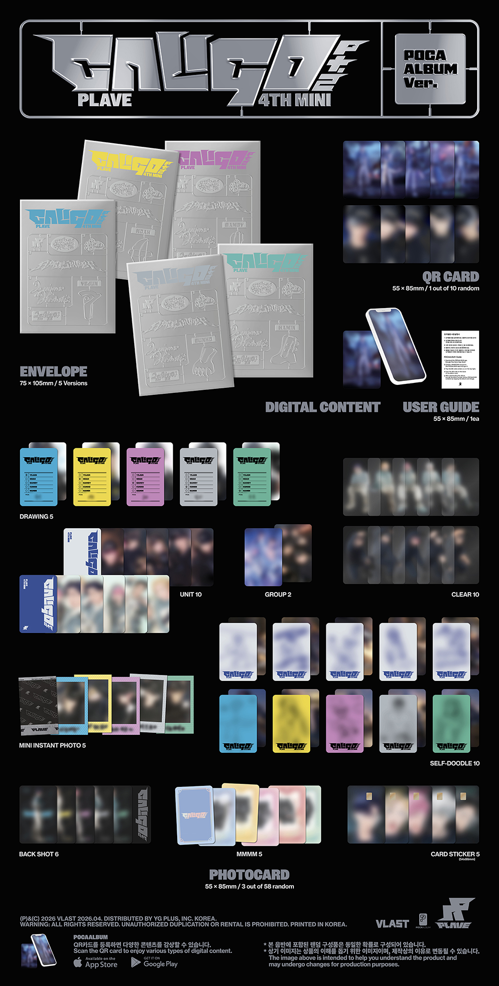 <Spec>총 5종- ENVELOPE / 75×105mm / 5 Versions- QR CARD / 55×85mm / 1 out of 10 random- PHOTOCARD / 55×85mm / 3 out of 58 random- USER GUIDE / 55×85mm / 1ea ※ 본 음반에 포함된 랜덤 구성품은 동일한 확률로 구성되어 있습니다.