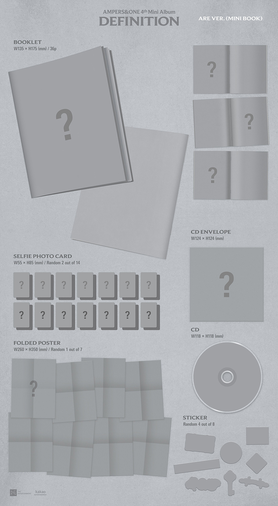 *앨범 사양- BOOKLET : 135mm x 175mm / 1종- CD-R : 118mm x 118mm / 1종- CD ENVELOPE : 124mm x 124mm / 1종- STICKER : 8종 중 랜덤 4종 삽입- FOLDED POSTER : 260mm x 350mm / 7종 중 랜덤 1종 삽입- SELFIE PHOTO CARD : 55mm x 85mm / 14종 중 랜덤 2종 삽입